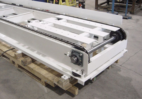 Chain conveyors are primarily used to transport heavy unit loads, e.g. pallets, grid boxes, and industrial containers. These conveyors can be single or double chain strand in configuration. The load is positioned on the chains, the friction pulls the load forward.